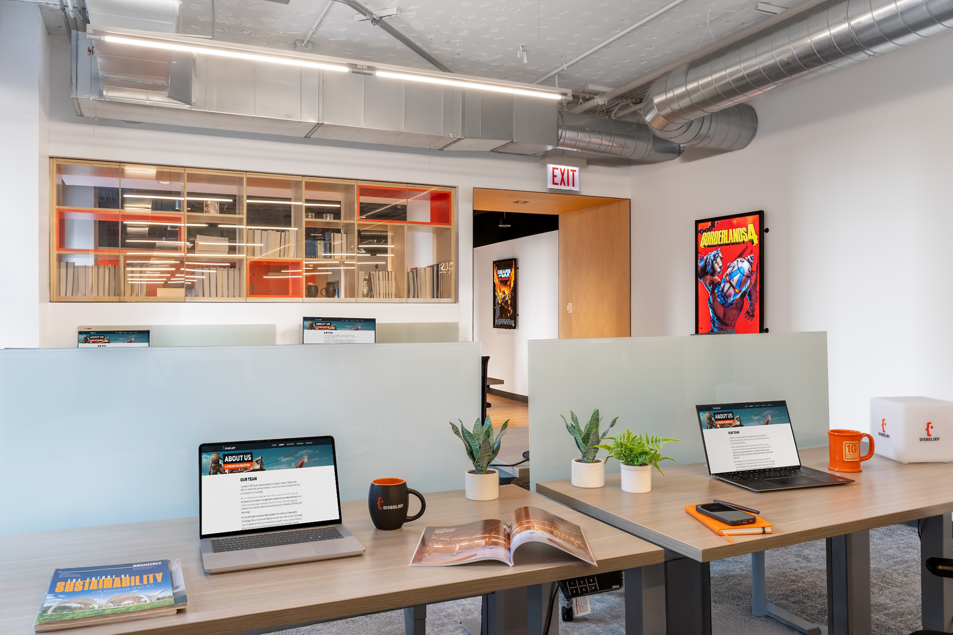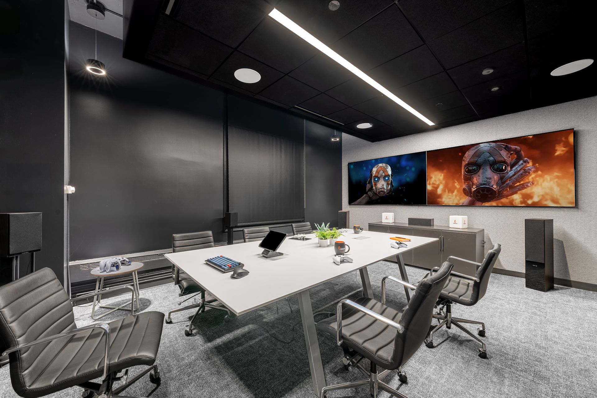 Disbelief Games' new office reflects the gaming organization's innovative spirit and collaborative culture, providing a flexible and dynamic environment tailored to the needs of a modern game development team. The layout combines a variety of workspace configurations, including individual workstations for focused tasks and open collaborative areas that promote creativity and informal collaboration. A balanced mix of enclosed conference rooms and dedicated gaming zones supports the team’s ability to develop and prepare games for consumers.
