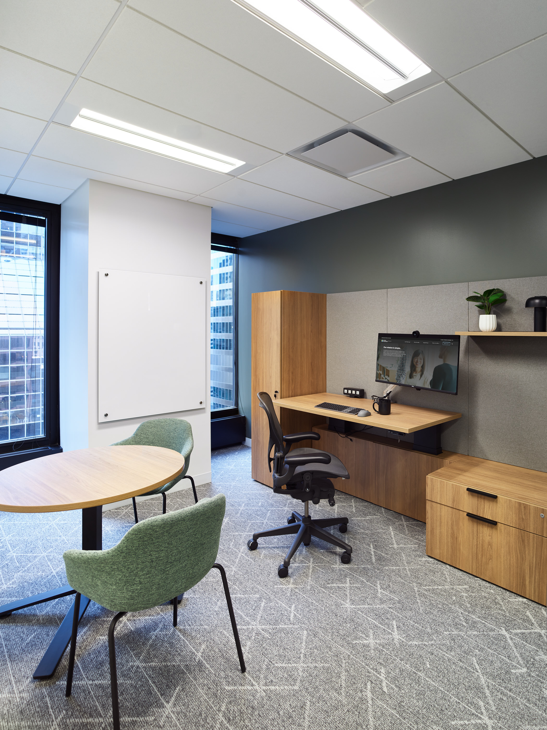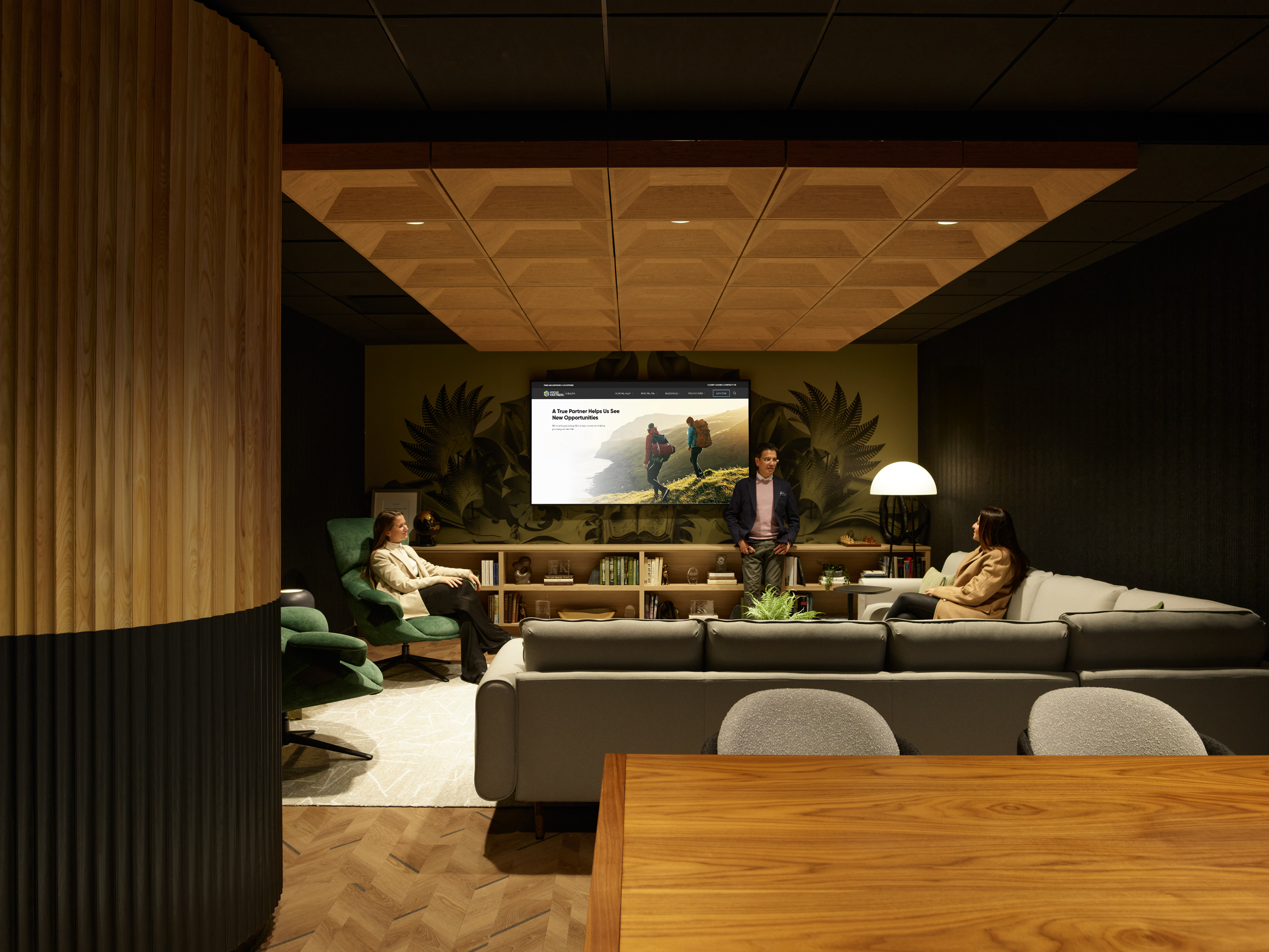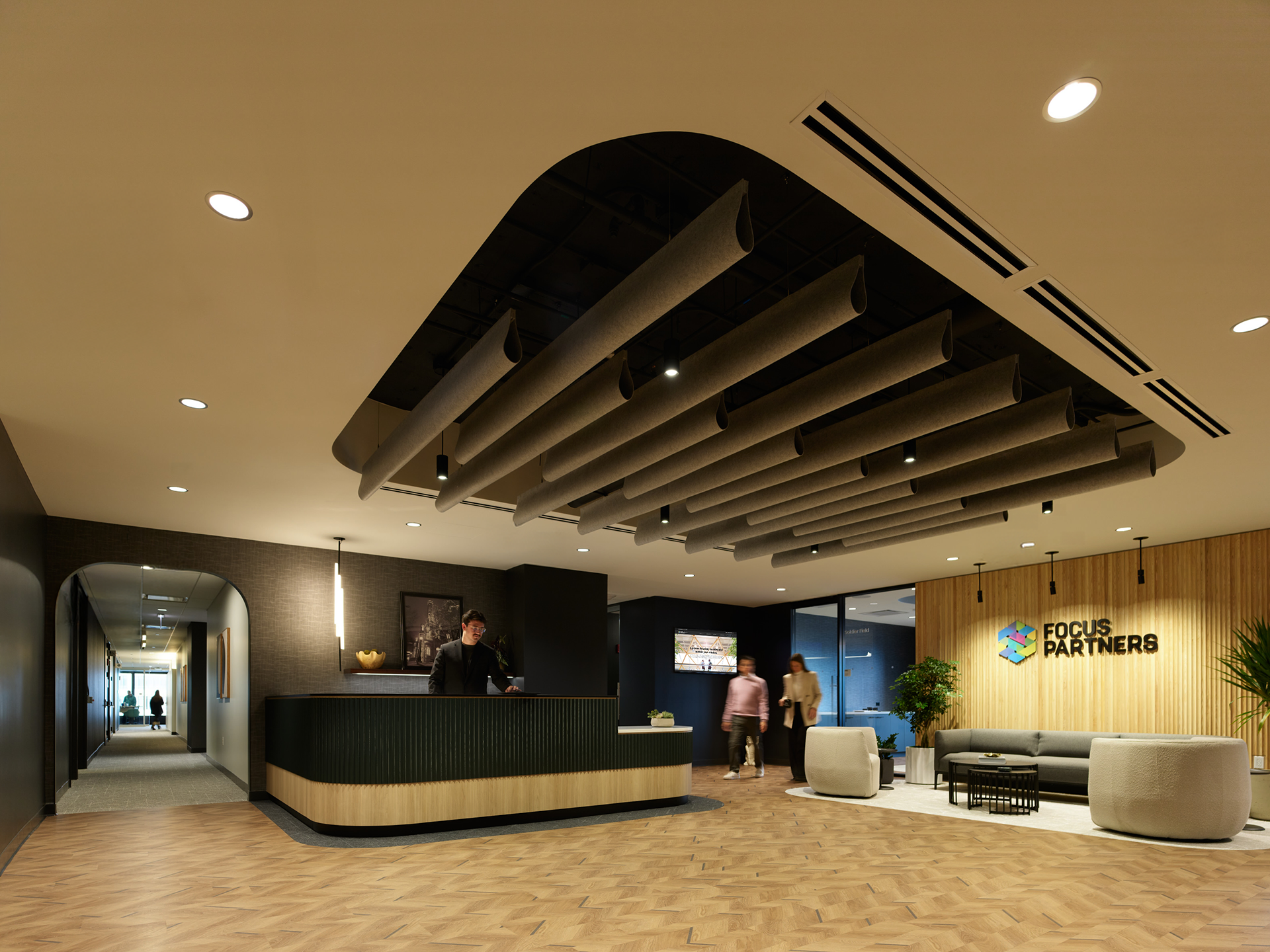 The result is a visually distinctive office that reflects Focus Partners’ professional identity and client-centric culture, while also providing an engaging destination that encourages return-to-office, strengthens collaboration, while in-turn positioning the firm for continued success.
