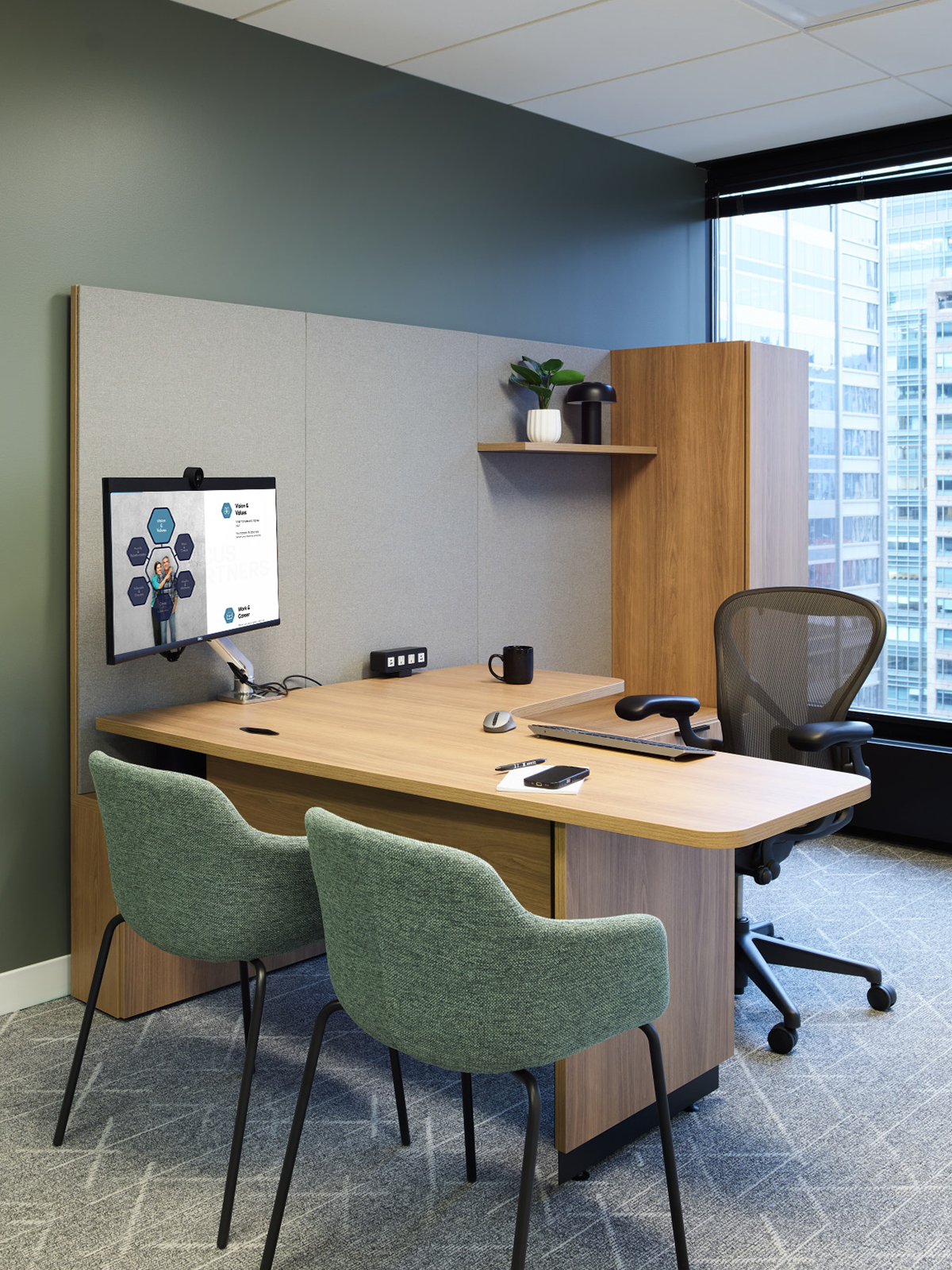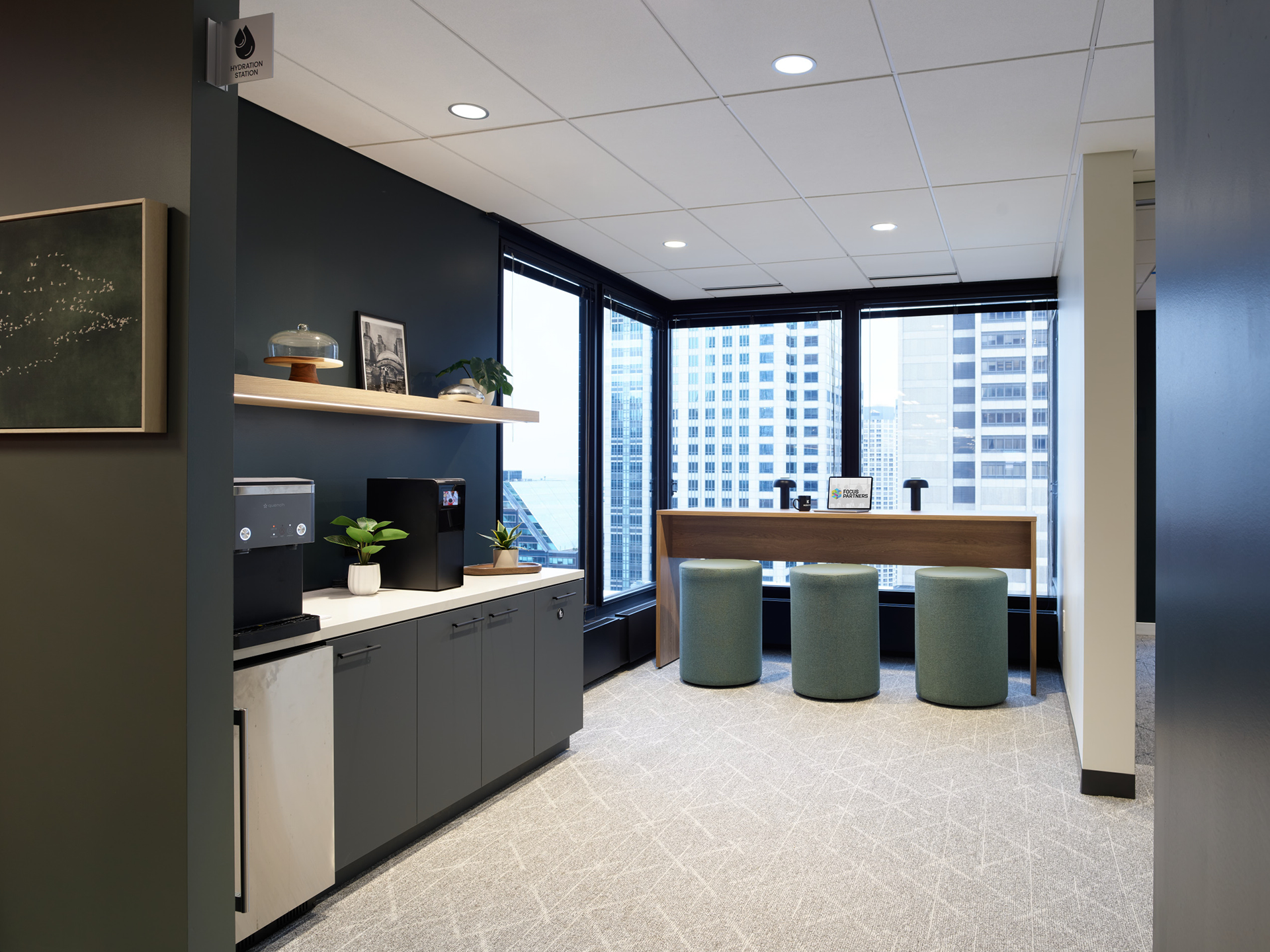 With budget efficiency as a key driver, BOX Studios thoughtfully leveraged and reworked existing conditions to maximize value while selectively investing in design decisions that would elevate the overall client and employee experience. Intentional planning, flexible layouts, and a cohesive moody material palette create a refined, high-performing workplace that supports productivity, and adaptability.