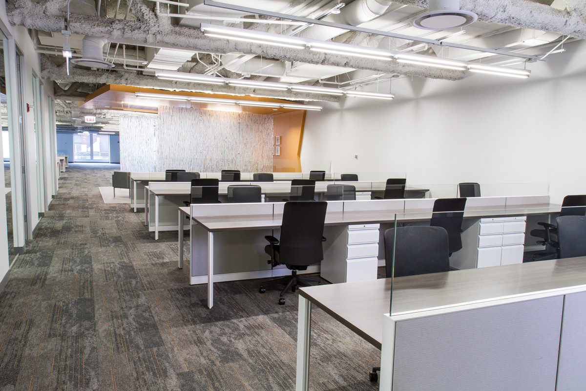 This spec suite was designed to appeal to a fast-growing company using a transitional color palette and modern workspace solutions. Benching allows for flexibility in reconfiguration and headcount, and lounge seating serves as multi-purpose meeting and work space.