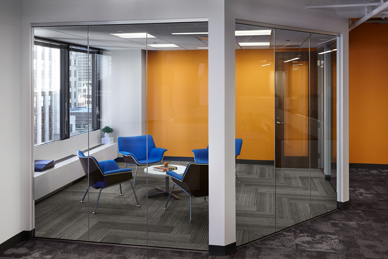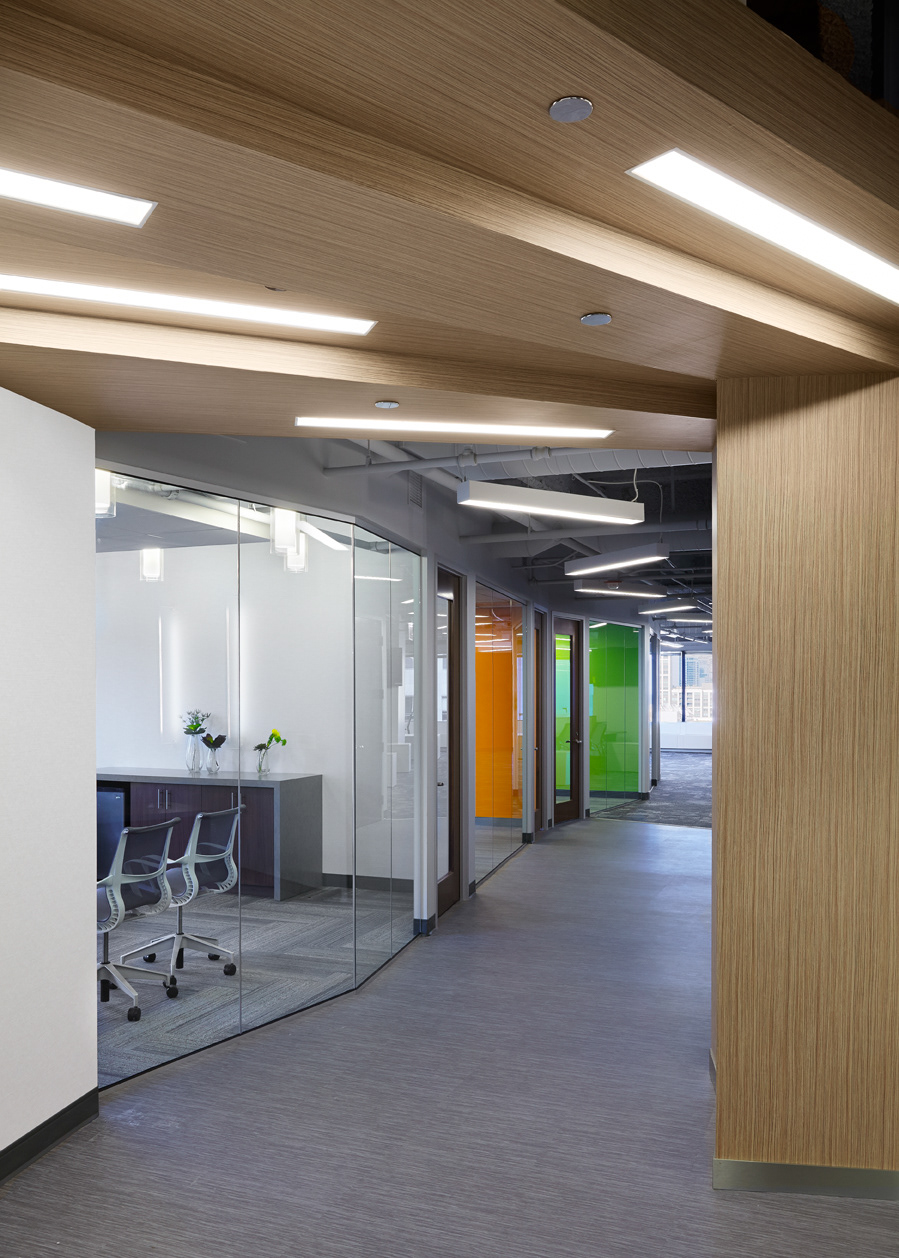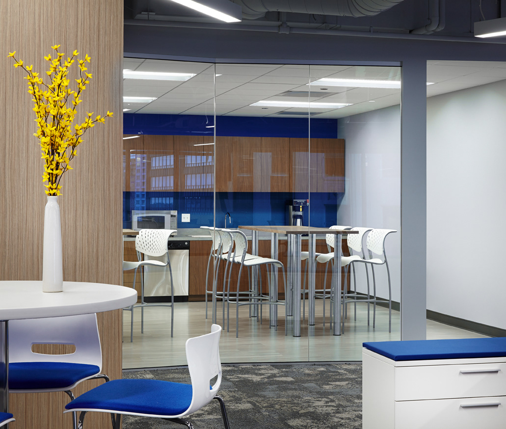 Internet-based business insurance provider, Insureon, scooped up this creative spec suite in the middle of construction. The aesthetics of an open plan, exposed ceilings and collaboration areas fit the company’s culture and help with recruiting and retention.