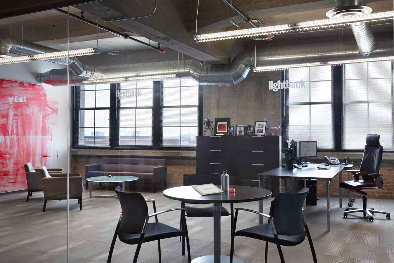 Lightbank is a venture capital organization investing in tech companies, including the deal-of-the-day website Groupon. The space houses lightbank and several of their start-up ventures.