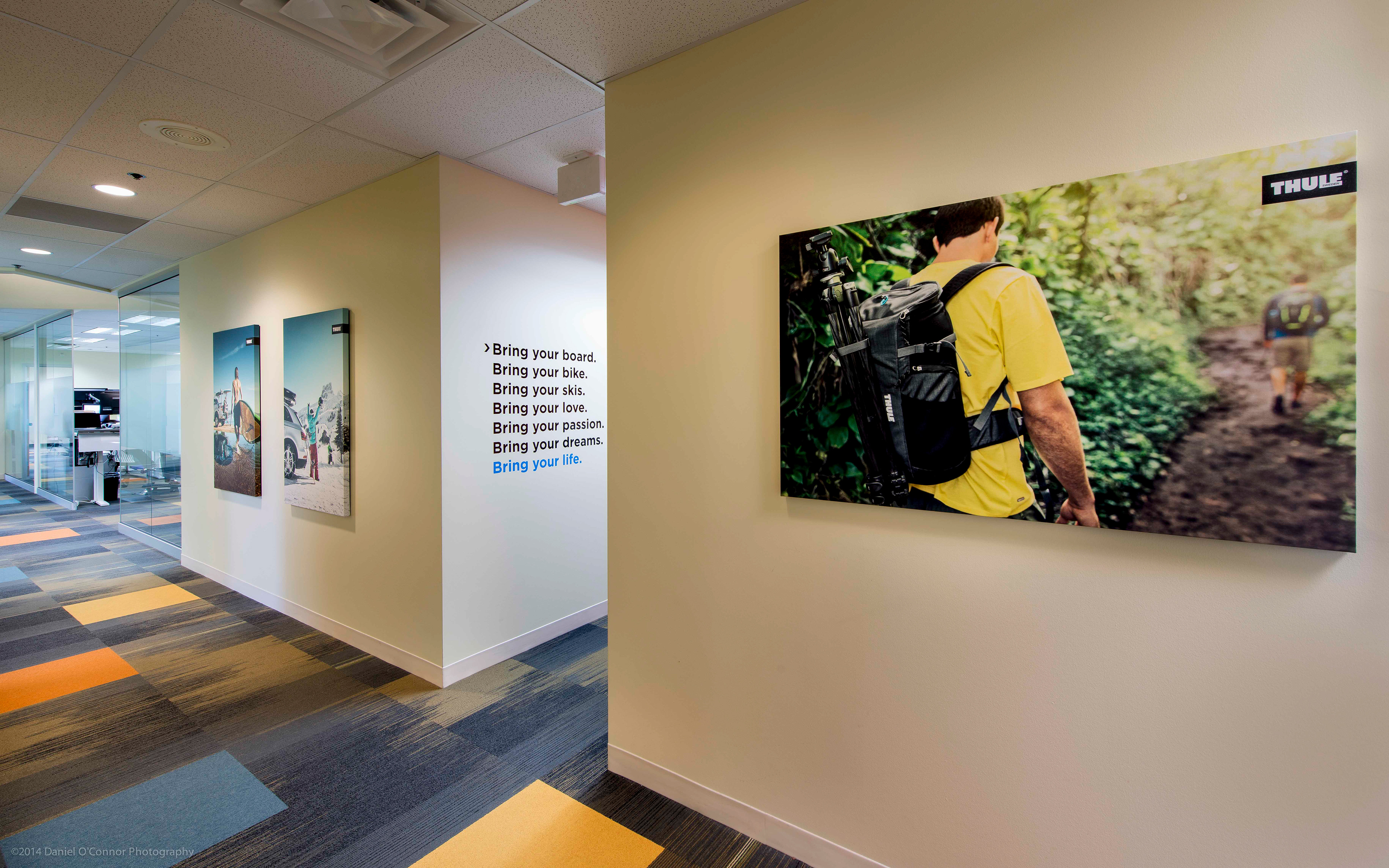 Thule was established in Sweden and made it their business to help you transport anything you care for safely, easily and in style. The interior renovation in Longmont, CO was fueled by the need to create more efficiency and consistency in the workplace. With a strong desire to incporporate their brand and company philosophy, Thule looked to BOX Studios to create a new office image that would boost moral and foster a more unified group of people. The outcome is an energetic office environment through the use of vibrant color and natural light representing what Thule is all about; the best outdoor gear and stroage systems.