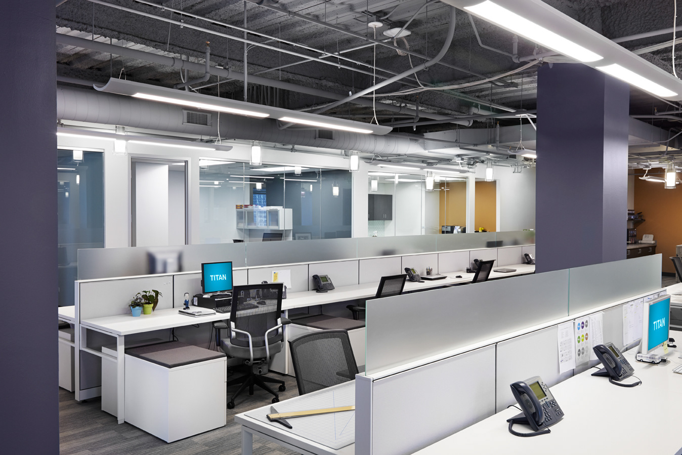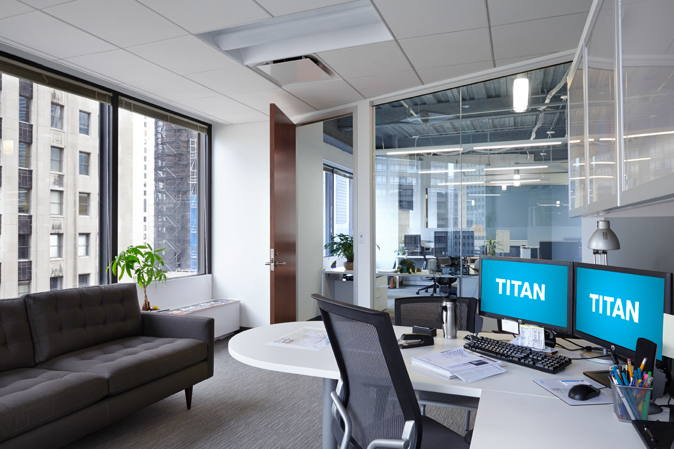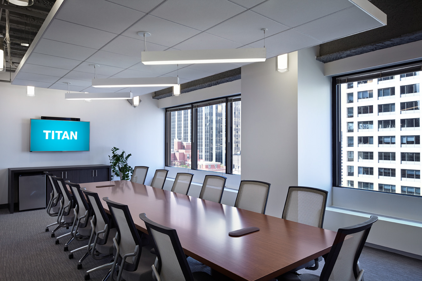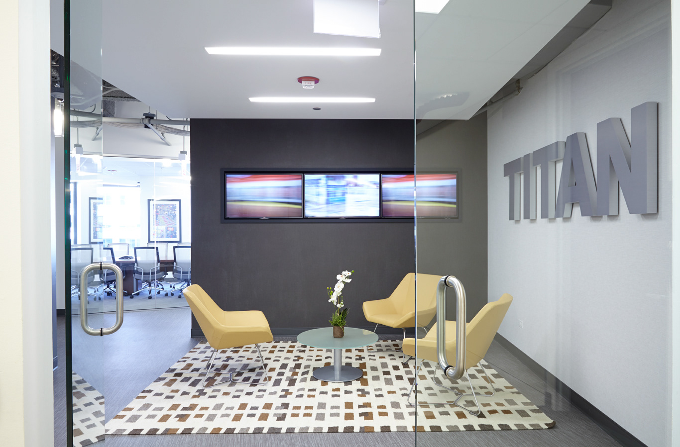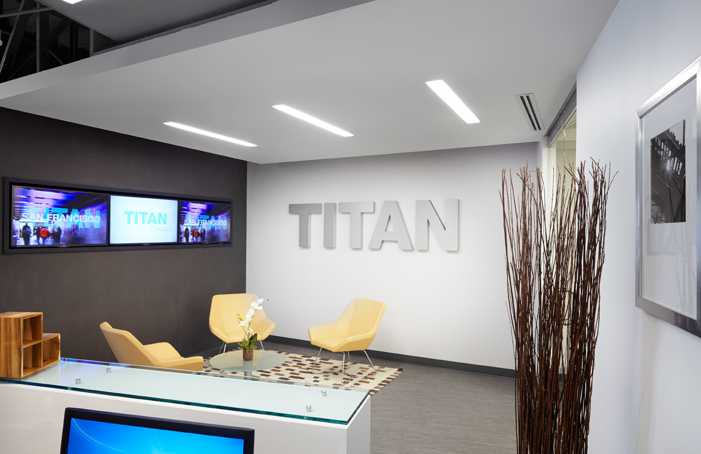 Titan is a national media company specializing in 'People in Transit'. The company moved into a spec suite space that was designed and developed by BOX Studios. With simplistic yet tailored features, Titan was able to successfully brand itself within a dynamic “tech” like environment, that they now call their “home”.